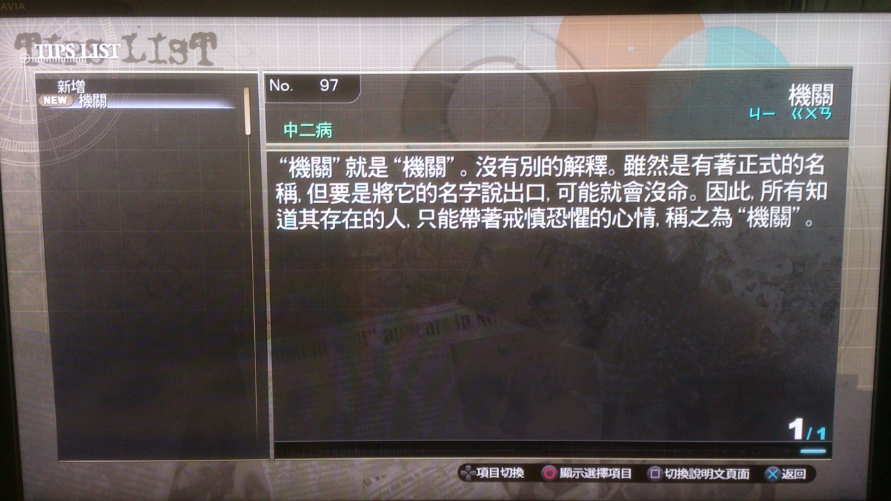 TIPS內的用語說明全中文化,而且還特別做了注音索引,可以用注音來查找用語。日本鄉民的常用語也被翻譯成台灣鄉民的常用語,令人遊玩時不禁會心一笑。